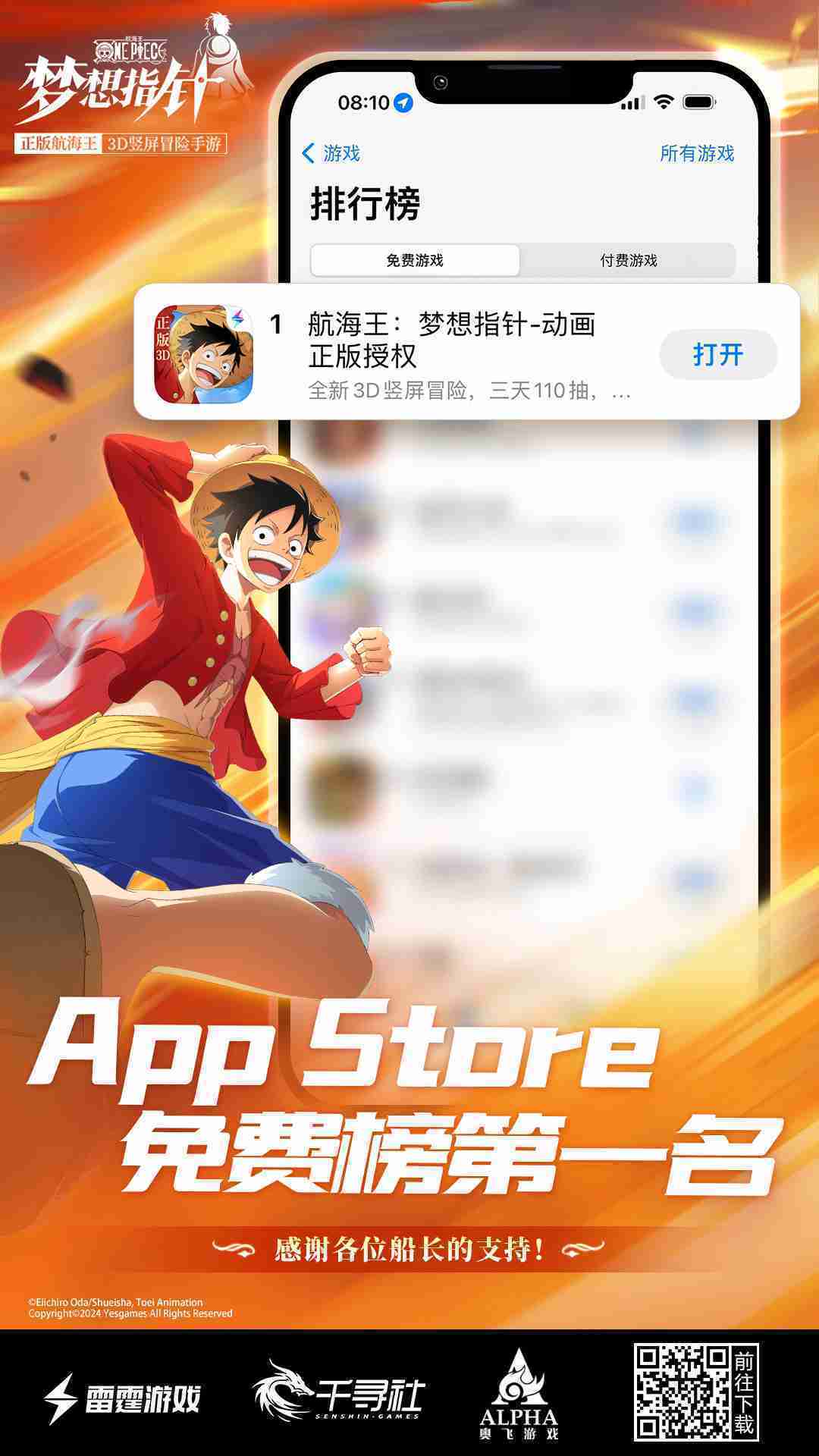 《航海王:::梦想指针》登顶App Store免费榜,,公测福利汇总!!